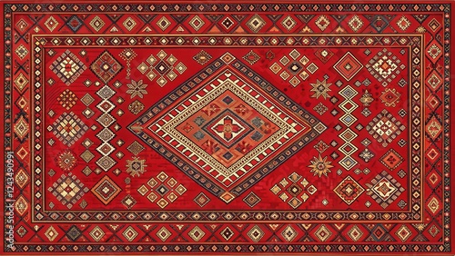 Bedouin Red Rug with Vintage Sadu Pattern, sadu, intricate, sadu, intricate, design, handmade, woven, interior, heritage