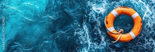 Orange Lifebuoy Floating on a Turbulent Ocean