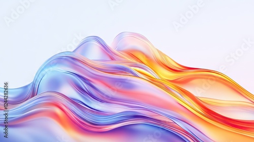 Abstract, flowing wave of vibrant colors, isolated on a light background with copy space. Fluid wavy iridescent shape, holographic lines, octane rendering, high detail, futuristic style