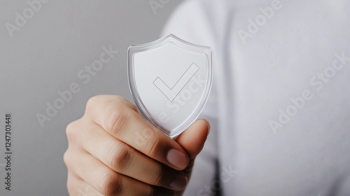 Protected and Secure: A hand confidently holds a clear shield with a checkmark, symbolizing trust, safety, and reliability. This powerful image conveys a sense of security and confidence.