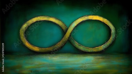 Golden Infinity Symbol on Teal Background Abstract Art