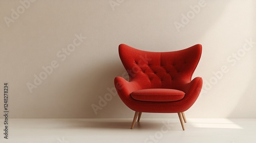 Stylish red armchair isolated on a light beige background, great for contemporary furniture and bold interior visuals.