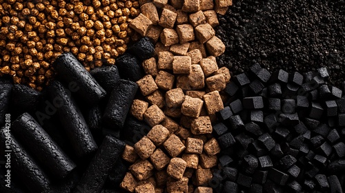 charcoal briquettes and wood pellets, biomass energy concept