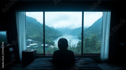 Contemplating Mountains View From Hotel Room On A Rainy Day.