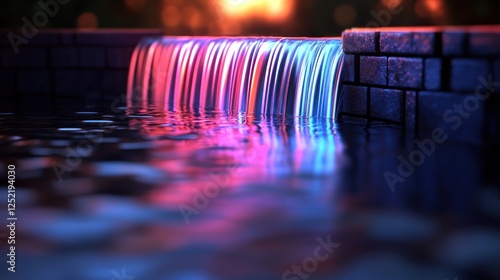 Serene waterfall cascading over stone ledge into tranquil pool reflecting vibrant colors