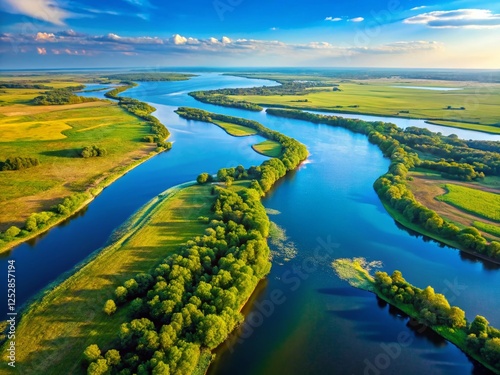 Aerial View of Astrakhan River Delta: Stunning Drone Photography of Russia's Volga River