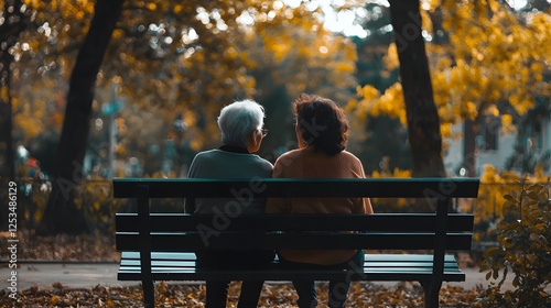 Serene Autumn Day With Elderly Couple Sitting on Park Bench
