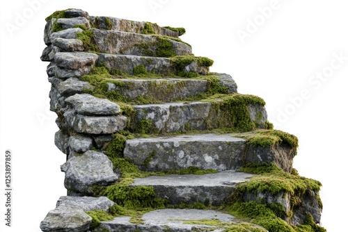 A set of old stone steps covered in moss, perfect for use as a background or to represent a natural setting