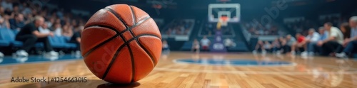 Close-up of basketball on court during intense game, march, closeup