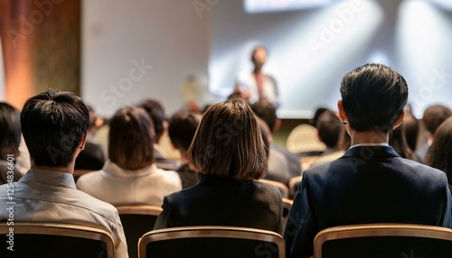 ビジネスセミナーでの講演を聴く参加者たちの後ろ姿 - プロフェッショナルな学びの場