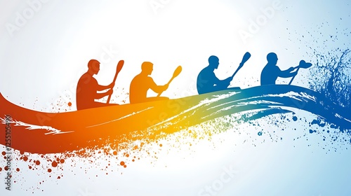 Rowing team silhouettes on abstract water background, graphic design for sport poster, print or website