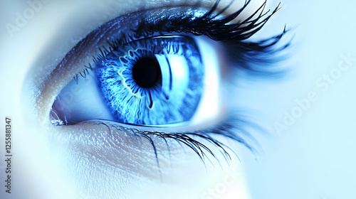 Realistic Image - Close-Up of Blue Eye with Long Lashes, Iris, Pupil, and Vision