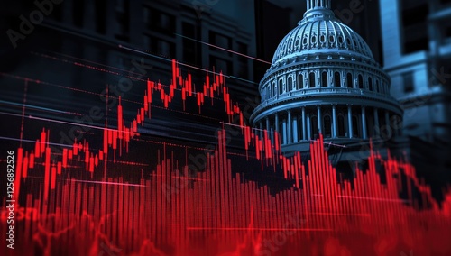 Political Uncertainty and Economic Downturn A Graphic Depiction of the US Capitol Building Overlaid with Declining Stock Market Trends