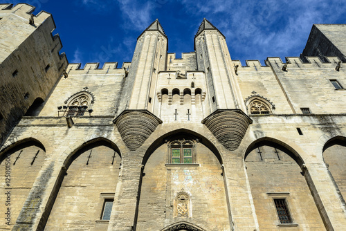 Facade of the Popes Palace in the historic centre of Avignon, France