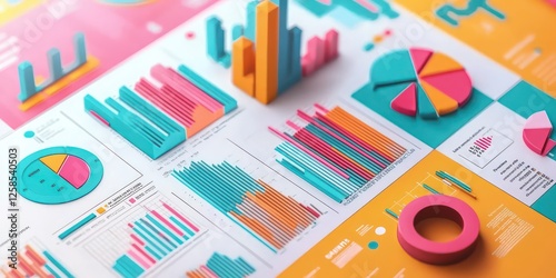 A creative infographic displaying statistics in colorful geometric shapes and icons.