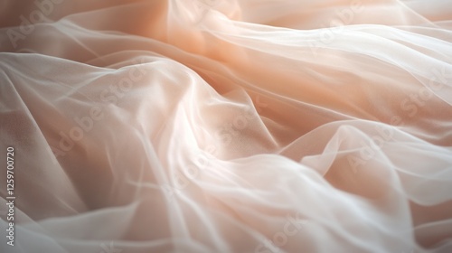 Peach tulle fabric texture, soft light, elegant drape, wedding dress detail, background