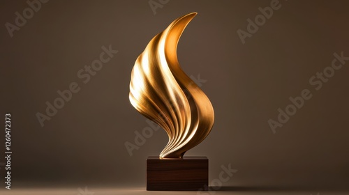 Fluid gold trophy with an elegant curved shape casting soft metallic highlights