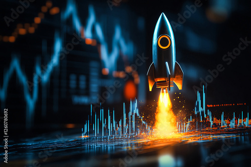 Rocket Launch & Financial Chart – Symbol of Rapid Growth & Upward Trends