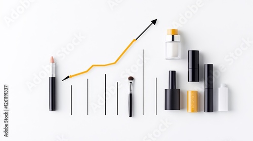 Makeup Products and Growth Trend Graph on a Clean White Background