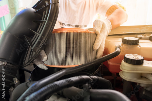 auto mechanic removing air filter for cleaning