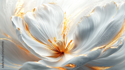 Biały delikatny malowany kwiat, z dodatkiem złota, dekoracja generative ai