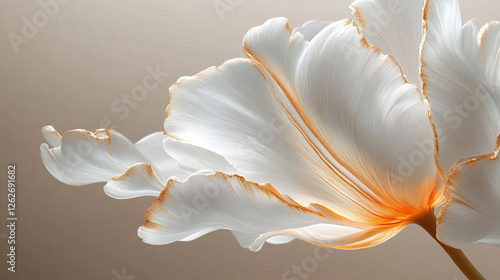 Biały delikatny malowany kwiat, z dodatkiem złota, dekoracja generative ai
