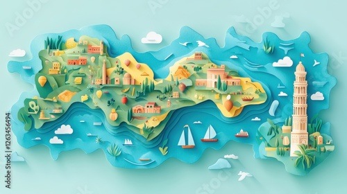 Explore a colorful map of Italy featuring iconic symbols and vibrant landscapes