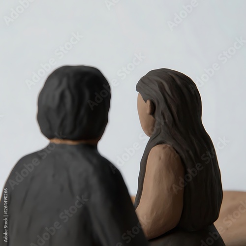 A Clay Sculpture Depicting Two Individuals in Thoughtful Contemplation, Possibly a Couple, a Scene of Quiet Reflection and Introspection, Characterized by Minimalist Style and Earthy Tones