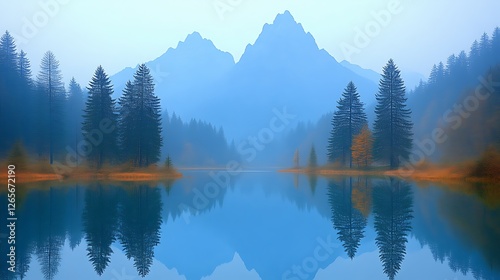 Serene mountain lake reflecting majestic peaks and autumnal trees