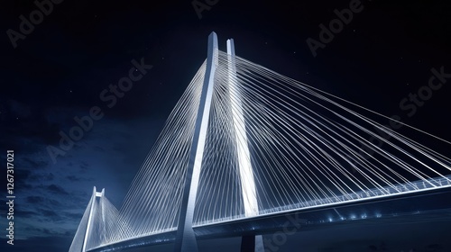 Close-up of Vasco da Gama Bridge's lighting system during night, showcasing the bridge's illuminated design features