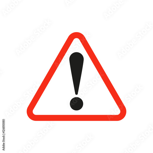 Hazard warning. Attention sign. Minimal flat icon. Red square with an exclamation point isolated on white background