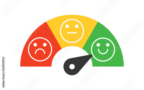 Customer Satisfaction Meter. Colorful Feedback Gauge with Happy, Neutral, and Sad Faces Indicator. Rating Scale for Review, Survey, or User Experience Evaluation on White Background.