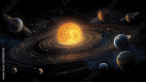 Solar system, planets orbiting sun, space, cosmos, astronomy.