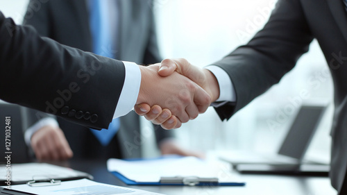 A close-up of a handshake as a symbol of trust. Trust in business builds relationships, trust in business strengthens reputation, trust in business leads to long-term success