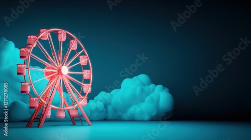 A Ferris wheel illuminated with colorful lights against a dark night sky, creating a festive and magical scene.