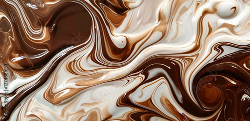 Abstrakcyjna mieszanka mlecznej i ciemnej czekolady w płynnej formie.