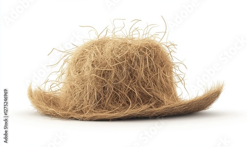 Unconventional straw hat with wild, unkempt texture against a plain background, showcasing creativity