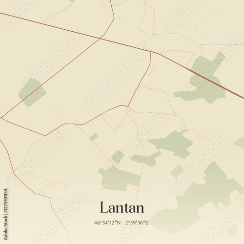 Vintage map of Lantan, France.