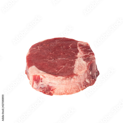 beef tenderloin steak, raw meat, cutout.