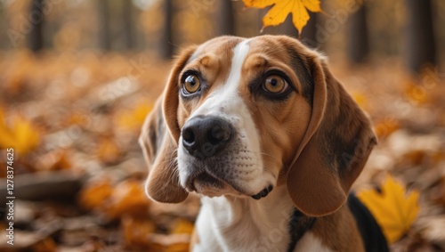 #1104260580realistic beagle dog portrait in autumn outdoors