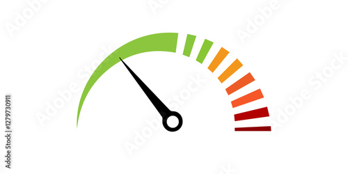 Set di icone del tachimetro. Illustrazione della barra del quadrante del livello di prestazioni. Simbolo di misura del livello di potenza. Grafico infografico del cruscotto con segno
