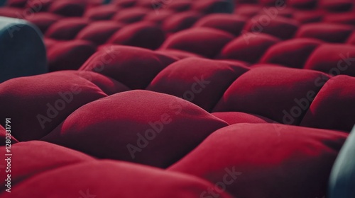 Empty red velvet theater seats, auditorium, showtime, performance, background blur