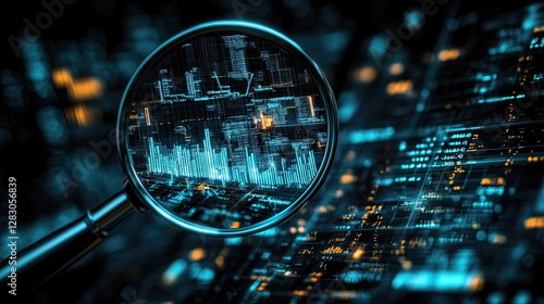 Business audit and fraud investigation with a magnifying glass evaluating financial statements and accounts, ideal for finance, forensic accounting, and corporate transparency visuals.