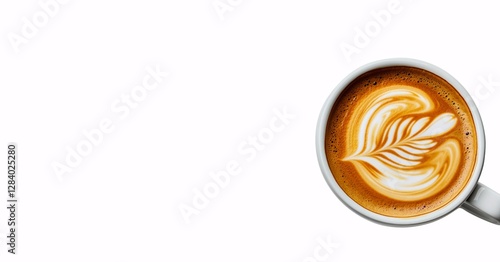Latte art coffee cup mockup with swirl design on top, clean white background.