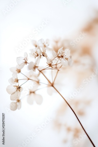 Zarte, getrocknete Blüten vor hellem Hintergrund