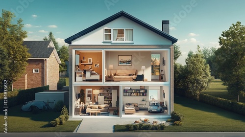 Detailed cross-section view of a contemporary two-story suburban house