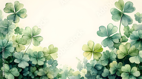 Elegant Watercolor Framed Four-Leaf Clovers for St. Patrick's Day with Sparkling Calligraphy Text