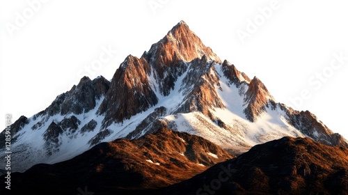 Rocky Mountain Summit, isolated peak against white backdrop, intricate textures, showcasing nature's rugged beauty and grandeur