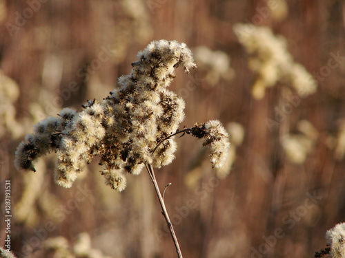 Nawłoć kanadyjska w czasie zimy. Uschnięta roślina