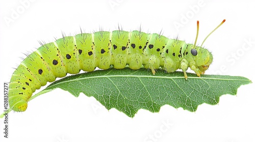 Close-up of Green Caterpillar on Leaf with Detailed Texture and Features